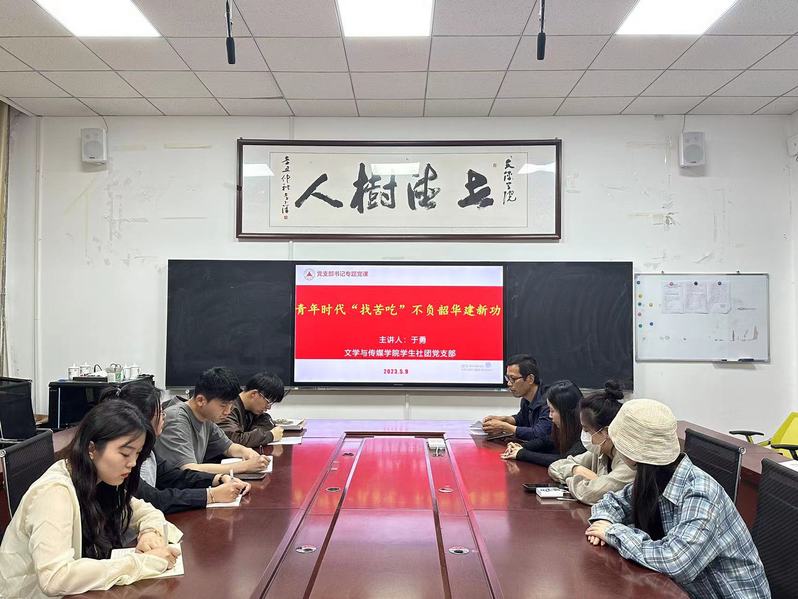 为扎实开展学习贯彻习近平新时代中国特色社会主义思想主题教育,根据学校主题教育工作安排,5月9日下午,文学与传媒学院学生社团党支部在文AA1006会议室召开“青年时代‘找苦吃’ 不负韶华建新功”主题教育专题党课,社团党支部书记主讲,党支部全体党员参加。