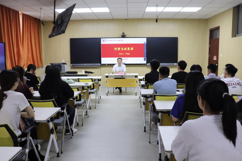 为全面落实主题教育走深走实,6月19日下午,党委委员、副校长于鸿远为文学与传媒学院学生讲授形式与政策课,文学与传媒学院党委副书记、辅导员及50余名学生代表参加了此次活动。