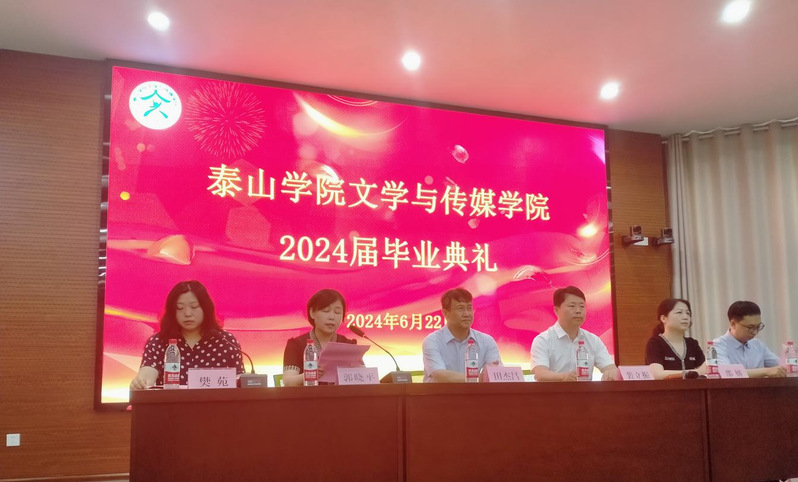 6月22日,文学与传媒学院于理工楼2004报告厅隆重举行2024届毕业生毕业典礼暨学位授予仪式。泰山学院党委委员、副校长田杰昌、学院领导班子、毕业班班主任、教师代表、毕业生辅导员、毕业生家长代表、学生代表,共同见2024届毕业生扬帆启航、踏上人生新征程的荣耀时刻。学院副书记樊苑主持本次典礼。