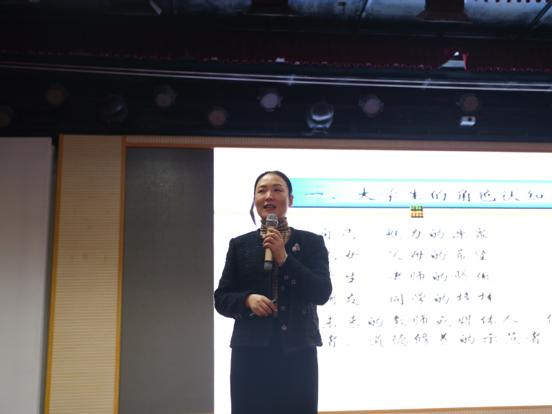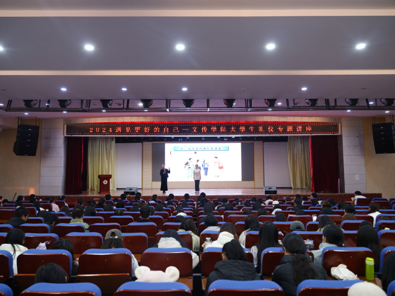11月8日,文学与传媒学院于南校区大学生活动中心举办了以“2024遇见更好的自己”为题的大学生礼仪专题讲座。本次讲座特别邀请旅游学院郑冬梅老师担任主讲,学院党委书记裴立振出席,文学与传媒学院新生一部全体学生共计四百余人参加。学院团委书记彭晓主持讲座。