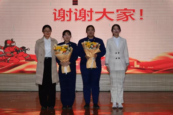 讲座结束后,团委书记彭晓对王琪教官的精彩讲授表达了诚挚感谢,并由学生代表为其献上鲜花。