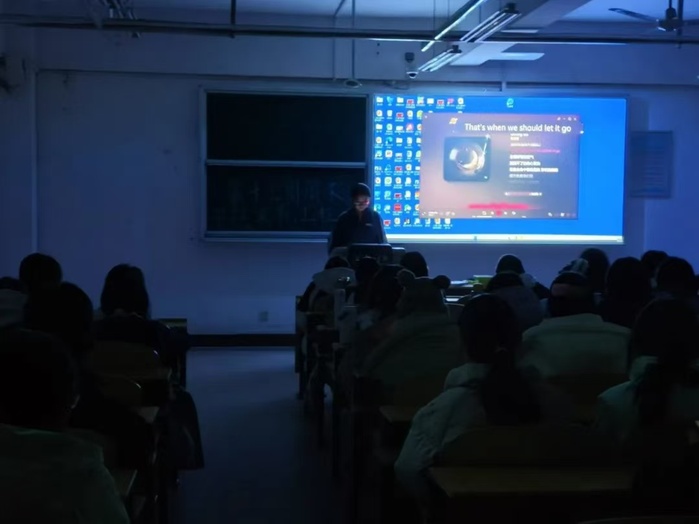 2024级全体同学参与活动。活动伊始,主持人强调活动纪律并宣布活动正式开始。接着,同学们自发报名,积极上台表演。大家以歌声为媒,倾诉着内心的情感,旋律流转,同学们沉浸其中,掌声不断。除了优美的演唱,大家还进行了许多有趣的游戏。在这其中“闹钟炸弹”让大家紧张不已。在紧锣密鼓的传递中,大家集中精力、动作迅速。不幸“爆炸”的同学展现了自己的才艺,为活动增添了许多乐趣。