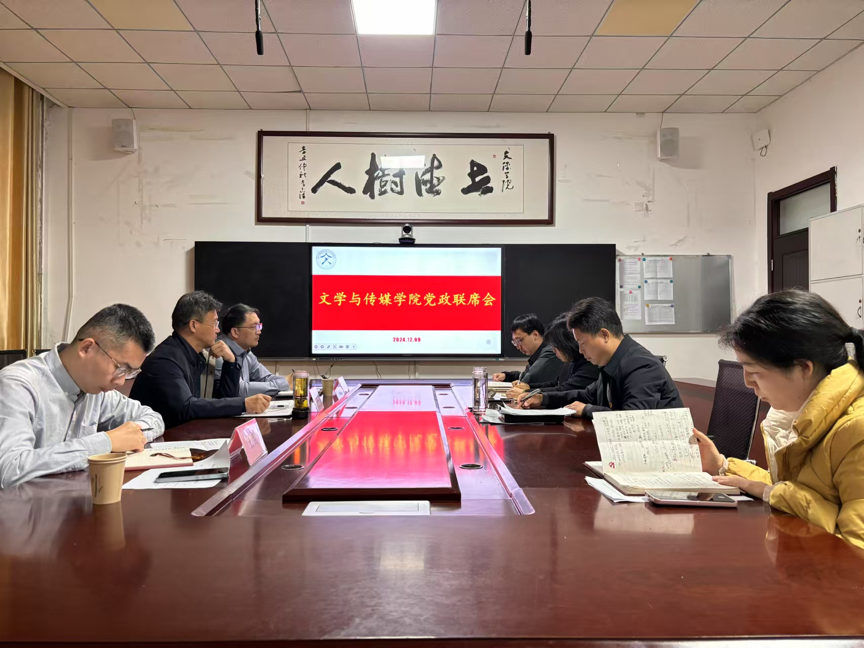 文学与传媒学院党委主要负责同志从学院全面从严治党工作取得的成效、存在的问题、改进措施等方面汇报了学院2024年全面从严治党工作开展情况,与会人员结合自身工作实际分别进行了交流发言。
