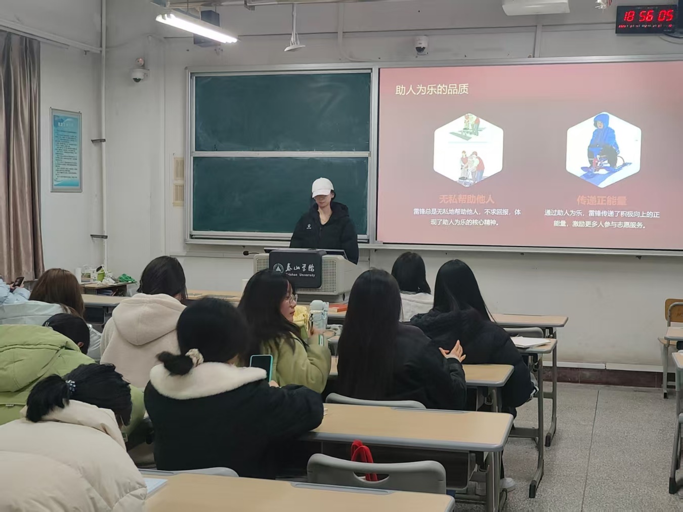 团课中,各班团支书们通过精心制作的PPT和视频资料,生动地展示了雷锋的生平事迹。从雷锋的苦难童年到他在工作岗位上的无私奉献,再到他助人为乐的感人故事,同学们深刻感受到了雷锋平凡而伟大的一生。在互动环节,同学们踊跃发言,分享身边的雷锋式故事,交流对雷锋精神的理解。汉语言文学专业的优秀学生代表表示:“雷锋精神不仅仅是做好事,更是一种对生活和工作的积极态度。我们要在学习和未来的职业生涯中践行这种精神。”