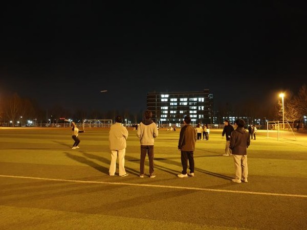 活动开场,主持人对流程进行了详细介绍,为整场活动拉开了序幕。此次活动以 “拥抱自然、舒缓压力、丰富精神生活” 为核心目标,创新性地融入了音乐、艺术、美食等多元文化元素,使同学们在享受自然美景的同时,能够领略不同文化的独特魅力。活动期间,丰富多彩的表演和趣味盎然的游戏成为亮点。丢沙包游戏环节中,同学们分成若干小组,在操场上来回穿梭,现场充满了欢声笑语,将活动气氛推向了高潮,极大地激发了同学们的参与热情。羽毛球互动环节同样精彩,同学们两两搭档,在轻松愉悦的氛围中挥拍竞技,在运动中释放压力,尽情享受春日傍晚的惬意时光。