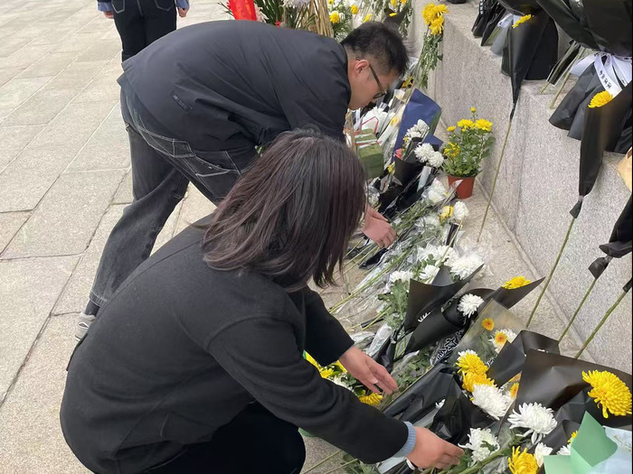 活动在庄严的国歌声中拉开序幕,全体师生肃然站立,齐声高唱,表达着对祖国的深切热爱与无限敬意。国歌唱毕,现场气氛瞬间变得凝重而庄严,全体师生低头默哀,深切缅怀那些为国家独立、民族解放而英勇献身的革命先烈们,以无声的敬意追思英烈忠魂。默哀结束后,全体成员手持白菊迈着庄重而坚定的步伐,依次缓步走向纪念碑,行鞠躬礼将鲜花轻放于基座前,娇艳的献花寄托着对先烈的无限思念与崇高敬意