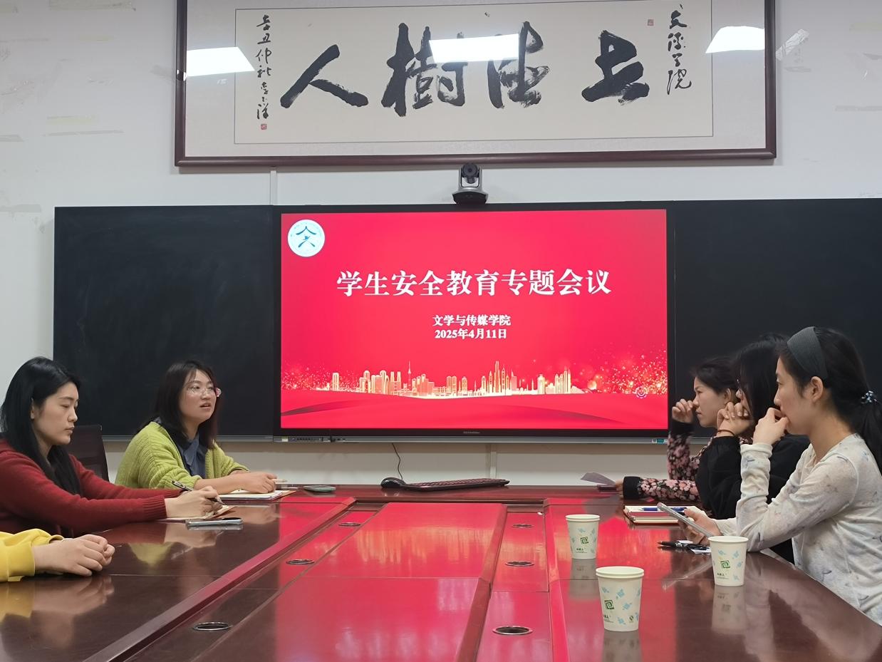 近日,文学与传媒学院在校本部文科A楼1006会议室召开安全教育专题会议。本次会议由学院团委老师主持,学院学生干部共计20余人参加。