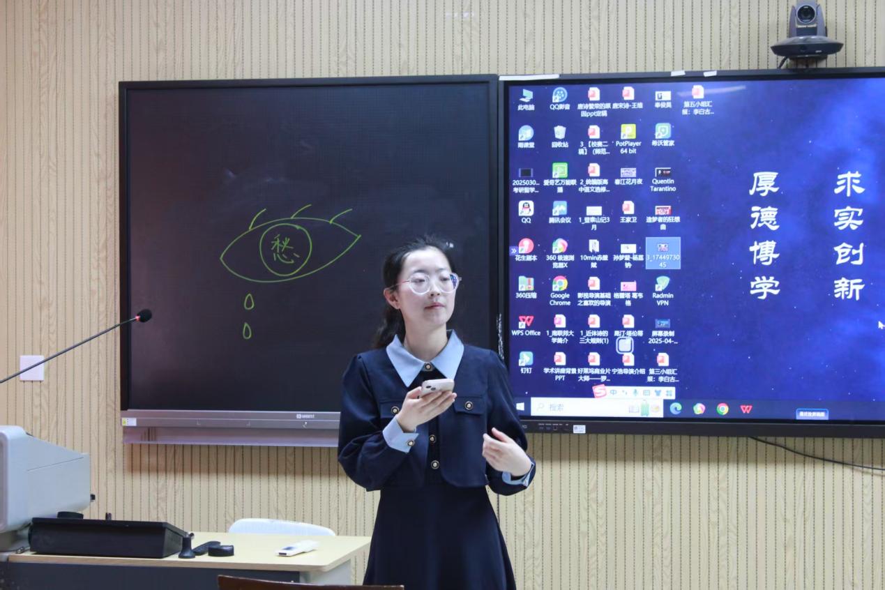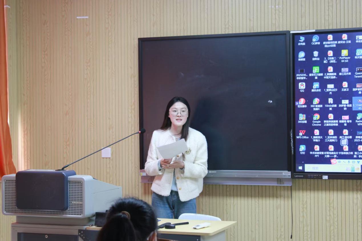 在经验分享环节,由第十二届师范生从业技能大赛省赛一等奖得主马文君同学结合参赛经历,从教材解读的破题技巧、学情分析的精准定位等方面进行了全面细致的经验传授,为选手们提供了宝贵的实战参考。