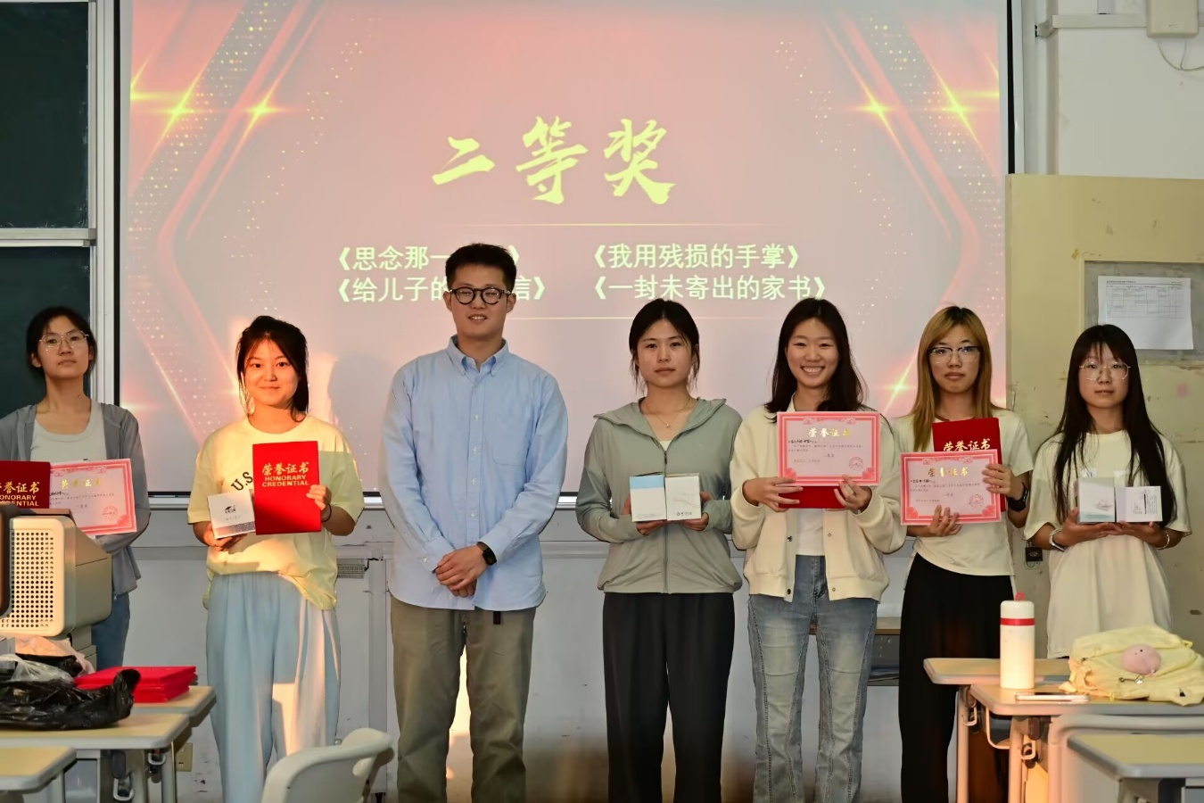颁奖仪式现场,学院团委老师对诵读经典的意义进行深刻阐述,强调经典承载着民族的智慧与精神,诵读不仅是活化经典的桥梁,更是青年学子对话历史、传承文脉的重要途径。此次大赛同学们以扎实的语言功底与独特的艺术构思,充分展现学院学生深厚的语言艺术素养,彰显出新时代青年对中华经典诵读的深刻理解与创新表达