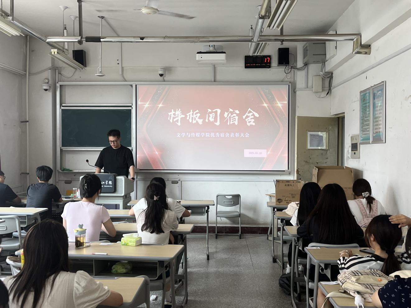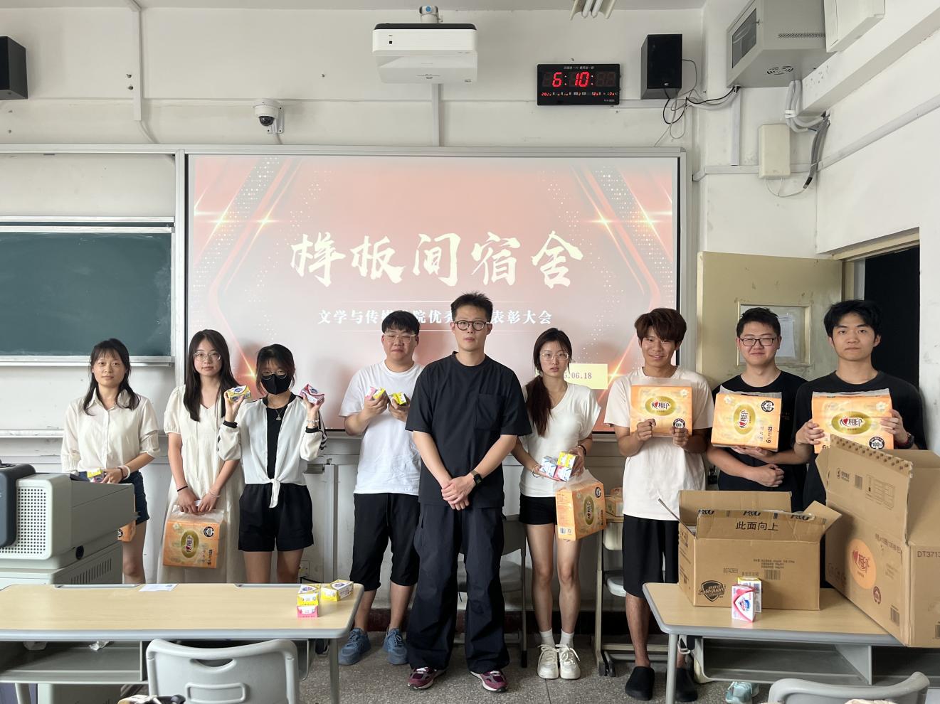 6月18日,文学与传媒学院于新生一部开展样板间宿舍颁奖活动。此次活动由学院团委老师主持,全体获奖宿舍成员参加。