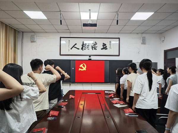 随后,全体毕业生党员在领誓人的带领下,面向鲜红的党旗,高举右拳,重温入党誓词。铿锵有力的誓言,字字千钧,响彻活动现场,不仅唤醒了党员们入党时的初心与激情,更让大家再次深刻感受到作为一名共产党员的光荣使命与责任担当。