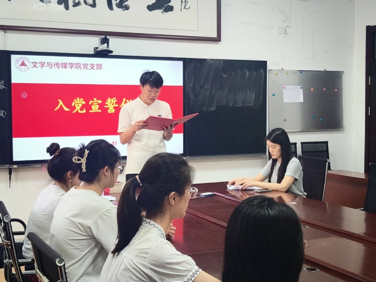 为激励广大党员坚定理想信念,进一步增强党员的党性修养、光荣感与使命感,6月27日,文学与传媒学院在校本部A1006会议室庄严举行2025年新党员入党宣誓仪式。学院党委书记裴立振同志出席仪式并讲话,学院团委老师、21 名新发展党员参加。仪式由学院团委书记彭晓主持。