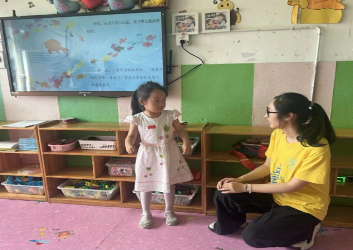在黄河文化传承工作中,青少年群体发挥着重要作用。实践团先后深入状元亭、文化长廊、民法典墙等社区文化地标开展调研,细致探寻当地的文化底蕴。结合东郡社区黄河文化传播的实际情况,实践团精准将小红帽幼儿园确定为文化传播的前沿阵地,并在此开展了“黄河文化进校园”活动。活动以“鲤鱼跃龙门”的经典传说为主题,设计了三大特色环节:生动有趣的神话故事讲解,让孩子们在童趣语言中感受黄河文化魅力;创意手工课程上,孩子们亲手制作折纸,描绘心中的龙门景象;特别是别开生面的“黄河水文”体验课,孩子们在泼水游戏中学习水文知识。这种集知识性、趣味性和参与性于一体的文化传播模式,为传统文化在青少年群体中的创新传承提供了有益探索。活动通过寓教于乐的方式,让黄河文化在孩子们心中生根发芽。