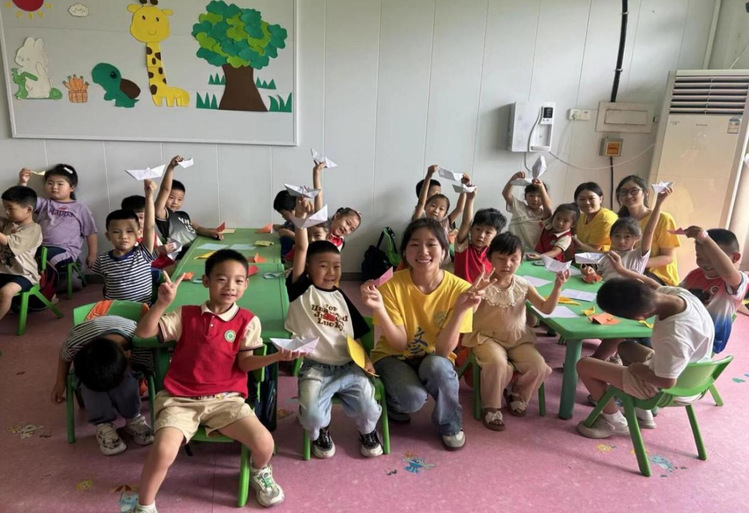 图3 实践团成员教小朋友们折纸