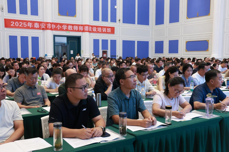 2025年8月12日,在泰安禧悦酒店成功举办2025年泰安市中小学师德建设培训班,本次培训由泰山学院和泰安市教育局共同主办,文学与传媒学院承办。全市中小学负责师德师风工作科室负责人、骨干教师317人参加了培训。