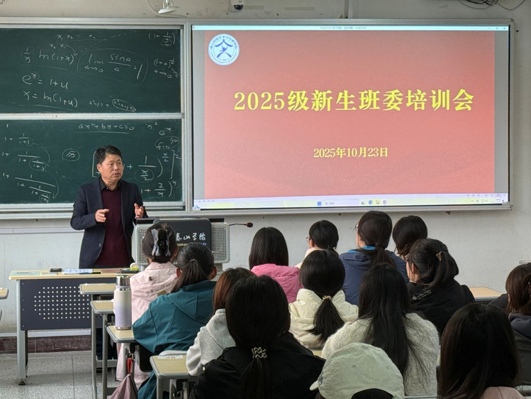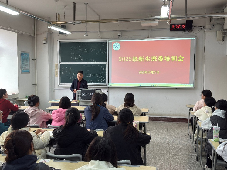 为帮助2025级新生班委补齐经验短板、提升履职能力、筑牢服务班级意识,10月23日,文学与传媒学院在新生一部综合楼C301教室召开2025级新生班委培训会。学院党委书记裴立振主持会议,辅导员高静琼及2025级全体班委参会。