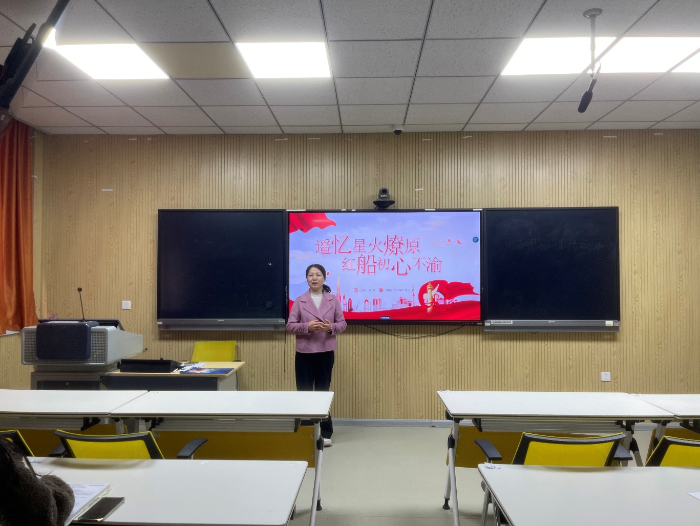 为进一步加强入党积极分子的党性修养,筑牢理想信念根基,11月28日下午,文学与传媒学院副院长邵妍在文科A楼3011教室以“遥忆星火燎原,红船初心不渝”为主题,为学院各学生党支部党员代表及入党积极分子讲授了一堂深刻而生动的专题党课。