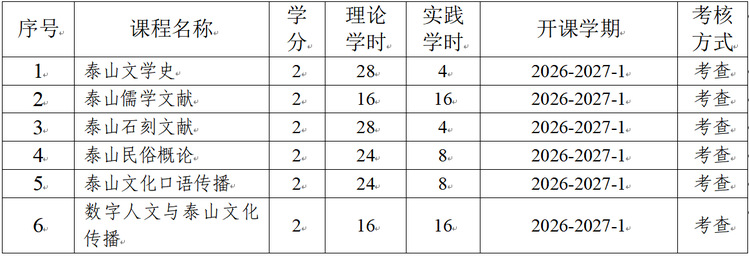 围绕“泰山文学”“泰山文献”“泰山民俗”“数字人文与传播”四大模块,构建短周期、强实践、重融合的课程群,助力学生系统掌握泰山文化资源的研究方法与创新应用能力。