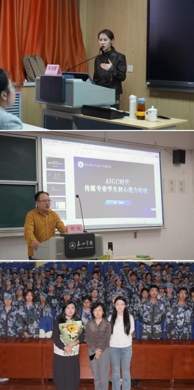 本年度首场及后续多期院内专家讲座,聚焦学科前沿与专业核心能力培育。张消夏老师以《传播先进文化,注重文化传承:基于红色出版的历史考察》为题,从考研视角解析中国新闻史重要性,系统梳理红色出版的历史意义与核心内容,为学子提供实用学术指导的同时,强化了文化传承使命意识;曹锐老师围绕“AIGC时代传媒专业学生核心能力构建”,结合实际案例解析人工智能对传媒行业的冲击与机遇,明确提出当代传媒学子需强化内容逻辑创作、提升技术运用能力、锤炼批判性思维与审美能力的核心要求;桑薇老师以“‘声’临其境,从眼到口的文学漫步”为主题,通过专业示范与实操指导,帮助2025级新生掌握文本阅读与语言表达的转化技巧,搭建起专业学习的基础桥梁。院内专家的讲座紧密结合教学实践与学科研究,为学子搭建起理论与实践衔接的纽带。