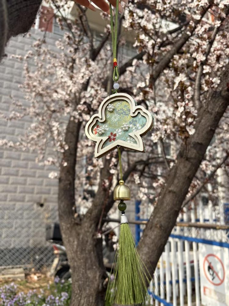 活动现场秩序井然、氛围融洽。宋锦布料的摩挲声、风铃部件的轻碰声与同学们的交流探讨声交织在一起,勾勒出春日校园的温情画卷。创作过程中,同学们专注投入、巧思迸发,或细致裁剪宋锦,呈现传统纹样韵味;或耐心拼接组装,将对春日的期许与对生活的热爱融入细节。大家相互交流技巧、分享灵感,在互动协作中增进情谊,在动手实践中舒缓压力。