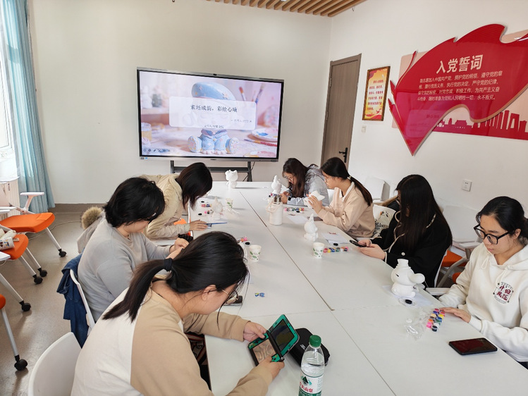 为舒缓同学们的学习压力,丰富校园文化生活,3月24日下午,文学与传媒学院在校本部6号公寓“一站式”学生社区开展了“春风启序,手作暖心”系列活动之“素胚成韵,彩绘心境”石膏DIY活动。本次活动由学院团委主办、学生会心理部承办。