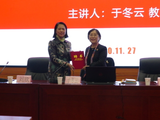 11月27日,文学与传媒学院“立人讲堂”系列学术活动月继续进行,山东师范大学文学院于冬云教授应邀来到我校,在国际交流中心报告厅面向文学与传媒学院中文类专业的师生们,做了题为“从《老人与海》看海明威的身份认同与文学乡愁”的学术报告。报告正式开始前,文学与传媒学院刘欣院长向于教授颁发了兼职教授聘书。于教授首先从海明威的生平细节入手,详细地介绍了这位在美国文学史乃至西方文化史中颇具传奇色...