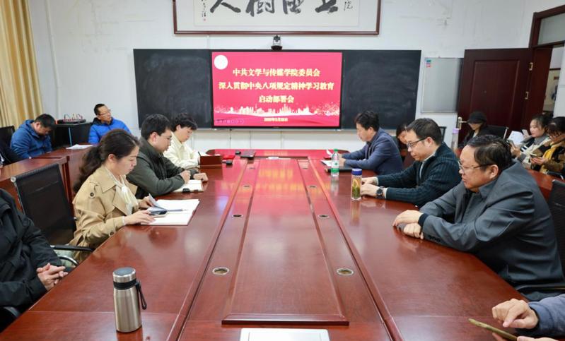3月25日,文学与传媒学院于文A1006召开深入贯彻中央八项规定精神学习教育启动部署会,学院党委书记裴立振主持会议并讲话。会议传达学习中央党的建设工作领导小组会议、省委常委会会议暨省委党的建设工作领导小组会议精神,以及《中共泰山学院委员会关于开展深入贯彻中央八项规定精神学习教育的实施方案》。会议指出,党中央高度重视中央八项规定精神的学习教育,为全体党员干部的工作作风建设锚定了方向。学院上下务必深刻领会习近...