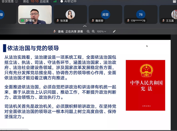 姜老师首先系统梳理了法治的起源与发展,阐释“法”字蕴含的公平正义理念,通过“刀制”与“水制”的比喻,形象辨析了“法制”与“法治”的本质区别。其次回顾了自新中国成立以来法治发展的关键阶段,并结合总书记提出的“法治兴则国家兴”,来提倡树立正确的法律思维。同时点明法治的前提在于确立良法与善治,这要求法律必须代表人民意愿、并确保权力受到有效制约。最终详细论述了自1997年党的十五大提出“依法治国”基本方略,到如今“全面依法治国”具体实践的发展与演进过程。强调在当代中国,法治建设必须坚持党的领导,不断夯实国家治理现代化的根基。