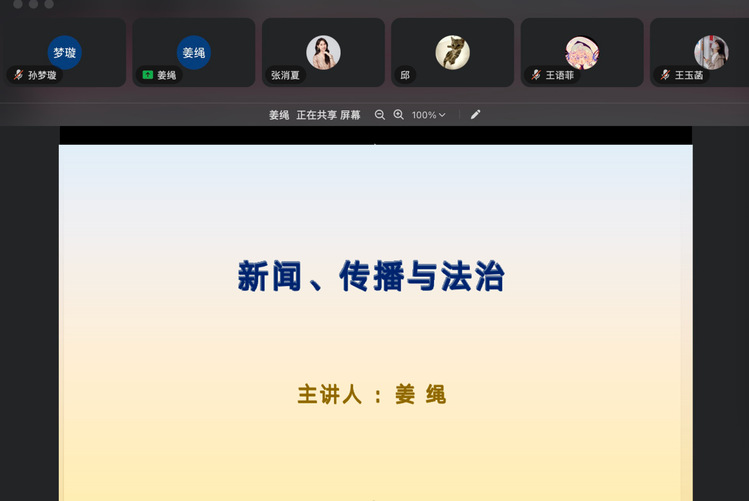 讲座以“在未经作者许可下能否录制有声书并公开分享录制内容”为切入点,引出版权归属的复杂性以及信息传播过程中遵循法律法规的重要性,聚焦“新闻、传播与法治”主题。