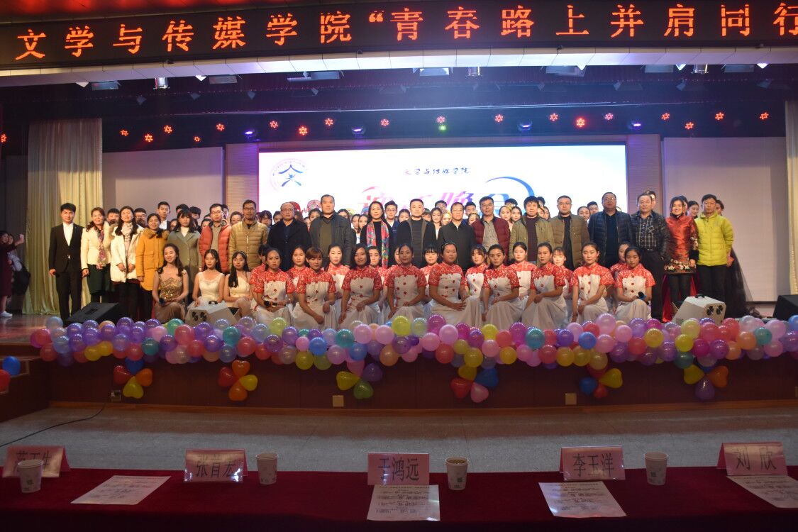 12月4日晚,文学与传媒学院“青春路上,并肩前行”2016级迎新晚会在南校区大学生活动中心隆重举行。 泰山学院党委副书记李玉洋、泰山学院副院长于鸿远、泰山学院学工处主要负责人、南校区管理办公室主要负责人、南校区团总支负责人、文学与传媒学院领导班子、相关老师和文学与传媒学院全体学生共计360余人参加了此次晚会。