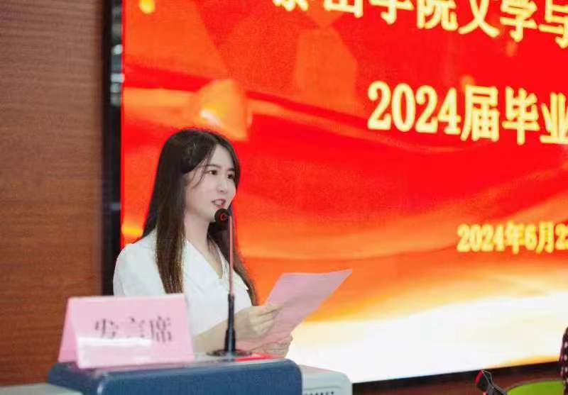 文学与传媒学院院长郭晓平教授代表学院致辞。郭院长向全体2024届毕业生顺利完成学业、踏上新的征程表示最热烈的祝贺,并对他们四年来的辛勤付出和学业成绩给予了高度评价,赞扬了文传学子们勤于学习、敏于求知的精神,鼓励他们自强不息、追求卓越。同时深情寄语毕业生,要书写无愧于青春、无愧于祖国、无愧于时代的壮丽篇章。