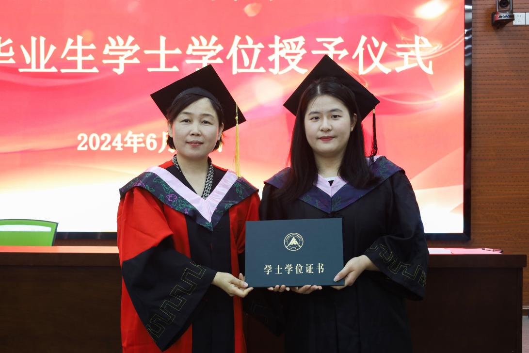斯有青秧,拨穗以彰。学院院长郭晓平教授为毕业生们拨穗、颁发学位证书,并与他们亲切握手、合影留念。这是对毕业生们学术成就认可与肯定,也是毕业生们学术生涯的圆满总结。
