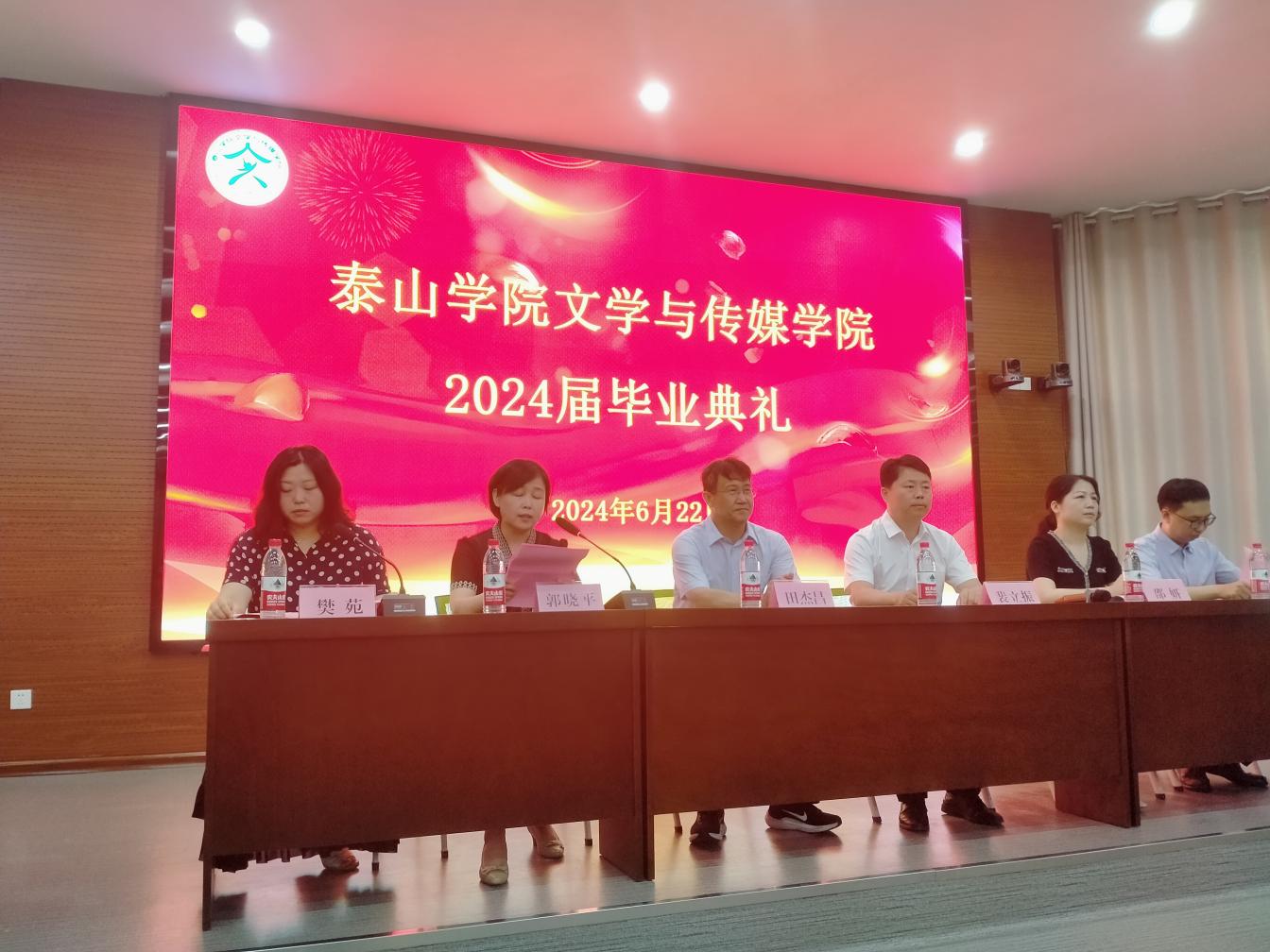 6月22日,文学与传媒学院于理工楼2004报告厅隆重举行2024届毕业生毕业典礼暨学位授予仪式。泰山学院党委委员、副校长田杰昌、学院领导班子、毕业班班主任、教师代表、毕业生辅导员、毕业生家长代表、学生代表,共同见证2024届毕业生扬帆启航、踏上人生新征程的荣耀时刻。学院副书记樊苑主持本次典礼。