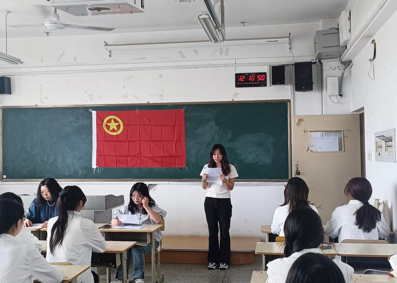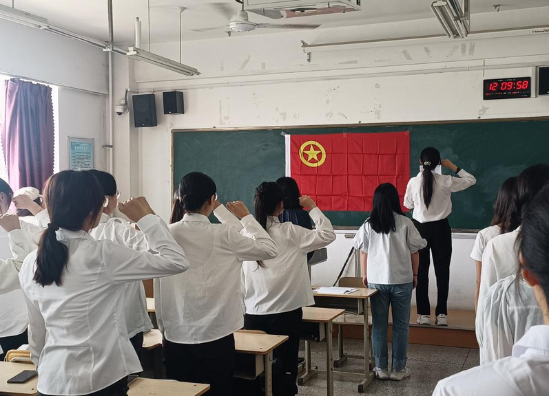 最后,全体团员起立,齐唱团歌,入团仪式在嘹亮的团歌中结束。