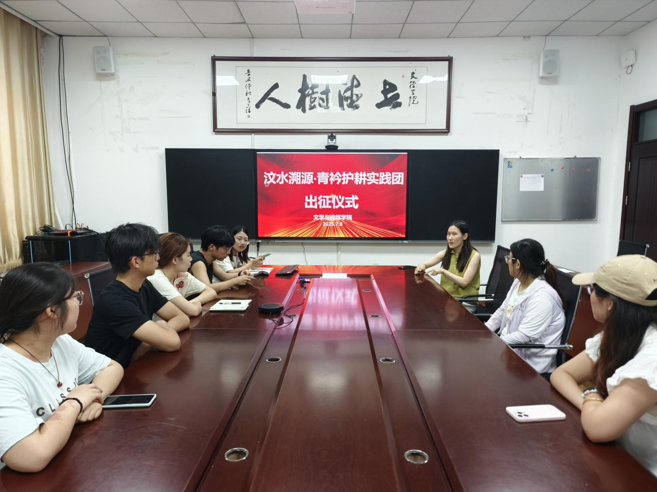 7月8日,文学与传媒学院在校本部文科A楼1006会议室举行“汶水溯源,青衿护耕”暑期社会实践出团征仪式。仪式特邀旅游学院专任教师刘敏担任学术指导,实践团全体成员参加。仪式由学院团委书记彭晓主持。