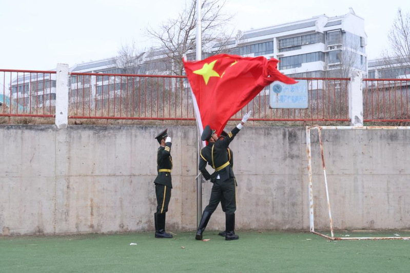 升旗仪式现场庄严有序,全体文传学子精神抖擞、整齐列队,面向国旗肃立致敬。伴随着雄壮激昂的《义勇军进行曲》,鲜艳的五星红旗迎着朝阳冉冉升起、迎风飘扬。全体师生行注目礼,齐声高唱中华人民共和国国歌,嘹亮的歌声回荡在校园上空,彰显着文传学子赤诚的爱国之心与昂扬的精神风貌