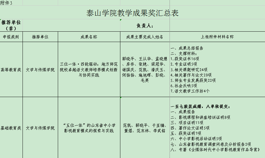 根据《关于做好省级教学成果奖预申报暨泰山学院2025年教学成果奖评选工作的通知》(教处字〔2025〕4号)有关要求,经完成人申报,学院组织专家评审,拟推荐“三位一体·四轮驱动:地方师范院校卓越语文教师培养模式创新与协同实践”、““五位一体”的山东省中小学影视教育模式的探索与实践”2项成果参加校级教学成果奖评选。现将推荐结果予以公示,公示时间为2025年03月05日至2025年03月07日,公示期间,如有异议,请向院长办公室...