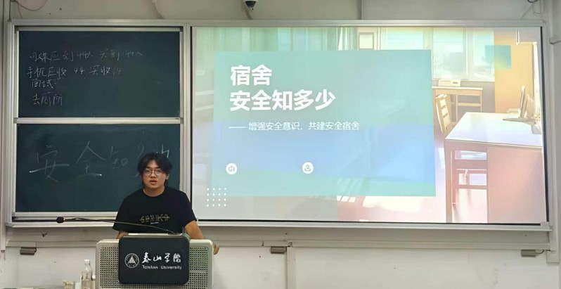 为增强学生住宿安全意识,提升自我防范与应急处置能力,新学期伊始,学院学生会宿管部面向2025级新生组织开展了以“安全知多少”为主题的安全知识宣讲活动。本次活动以班会形式开展,聚焦宿舍常见安全风险,内容实用、贴近实际。宣讲围绕宿舍用电安全、消防安全与应急处理、防盗与生活安全三大板块展开。宿管部成员结合真实案例,通过PPT讲解、视频解析等方式,为新生带来了一堂生动的安全教育课。在用电安全方面,重点提醒学生禁...