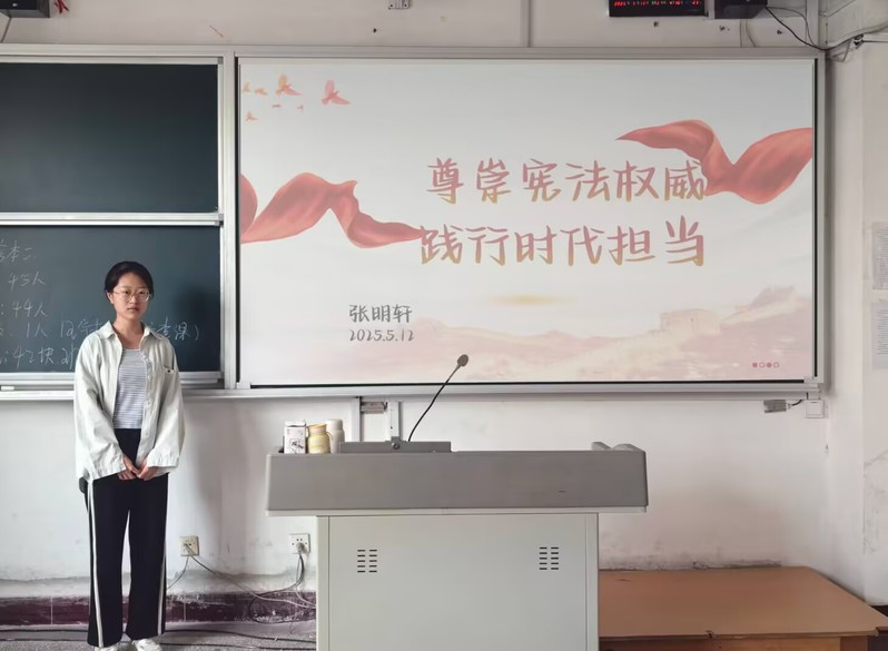 5月12日,文学与传媒学院于南校区组织各班召开“尊崇宪法权威,践行时代担当”主题班会,2024级全体学生参加。活动通过视频学习+理论讲解+实践互动的形式展开。首先播放的宪法宣传视频以生动案例展示了宪法在保障公民权利、维护社会秩序中的重要作用。随后,主讲人通过图文并茂的PPT,系统讲解了宪法的基本概念、发展历程和核心内容,并结合典型案例阐释宪法作为国家根本大法的权威性。活动特别设置了丰富的互动环节。在情景模拟中...