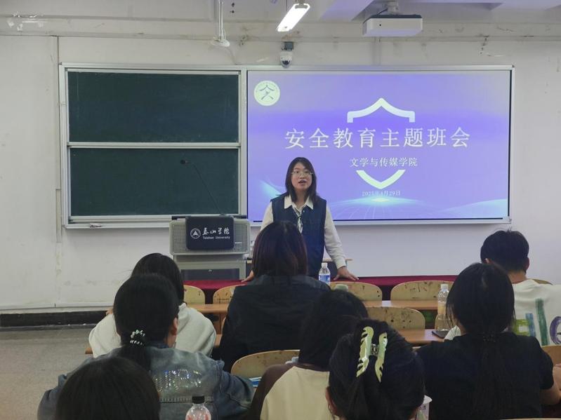 4月29日,文学与传媒学院于南校区A807教室召开“安全教育”主题班会,本次班会由学院团委书记彭晓主持,南校区2023级全体学生参加。班会上,彭晓结合多个真实案例,从交通安全、防溺水安全、防诈骗安全及宿舍安全等多个方面展开深入讲解。在交通安全方面,团委书记强调要严格遵守交通规则,做到 “宁等三分,不抢一秒”;夜间出行应选择光线明亮、人员较多的路线,避免在道路上嬉戏打闹。针对防溺水安全,明确要求同学们牢记防溺水...